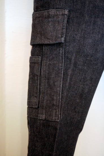 「誰もが迷うことなく美しいと謡う」というのがテーマです。美しくテーパードしたスラックスのようなデザインをスーパーストレッチデニム素材で構成しています。今回、ONE WASH INDIGOでカーゴデザインを採用しました。