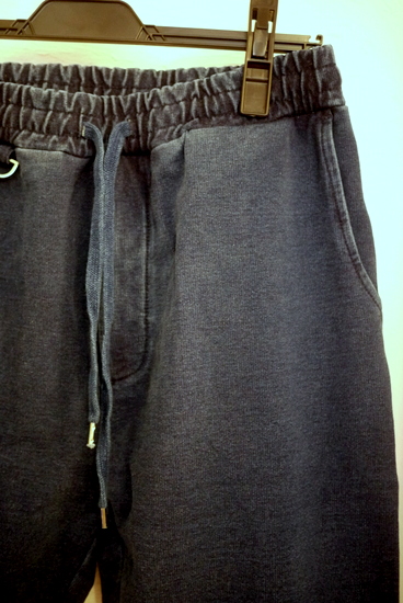 こちらはコシのある裏毛素材にインディゴ染め+洗いを施した素材を使用したイージーパンツ。インディゴ独自のしっとりとした感触が心地よく、リラックス感のあるデニム風パンツです。