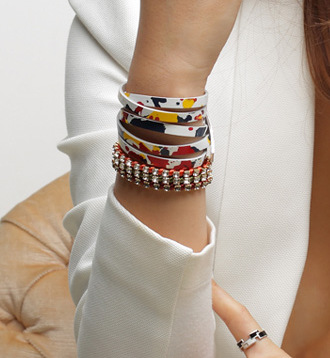 一つ一つはさり気ない大きさですが、どこか人目を惹くアイテムです。ちょっとした差別化!、寂しくなりがちな腕回りをカバーするためにもブレスレットをうまく取り入れたい!!