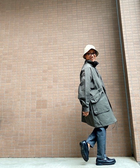 膝丈コートの下からスリムフィットパンツが覗いてみえるのもかっこいいんですよ。