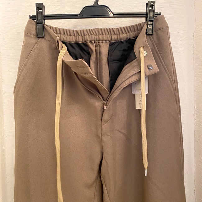 今日はよりリラックスしたワイド系のスラックスパンツです。