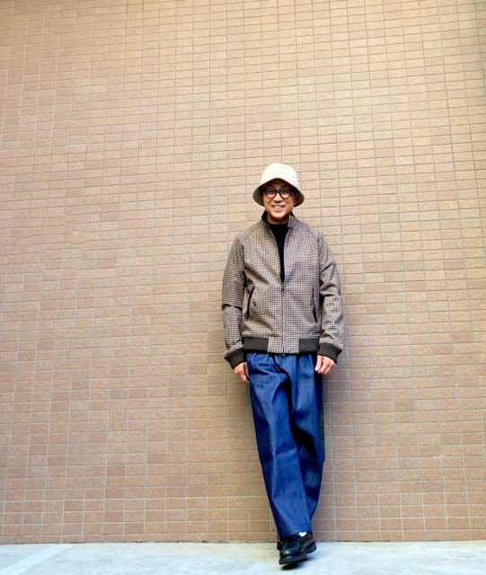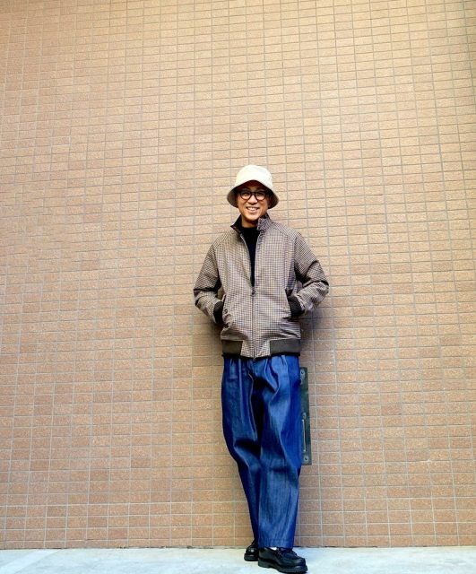 オフィシャルのモデルさんは細身なデニムで合わせていますが、リラックスしたデニムでも大丈夫ですよ。