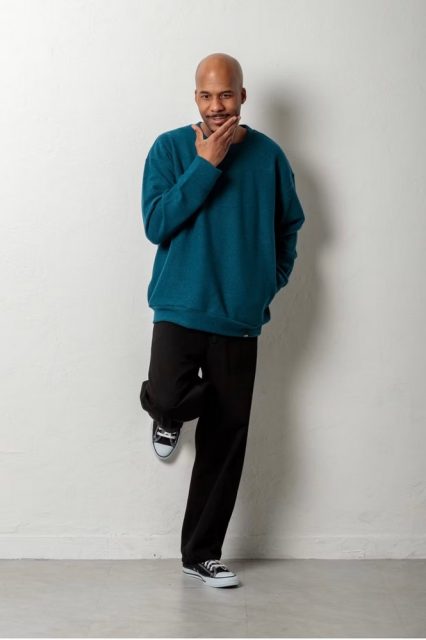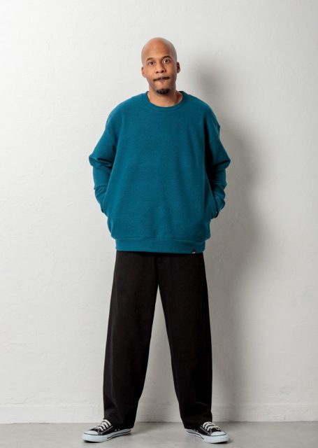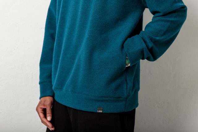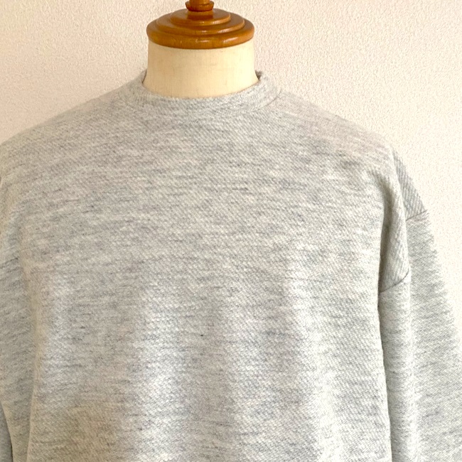 ウールインレイ素材を使用したクルーネックスウェットシャツ。