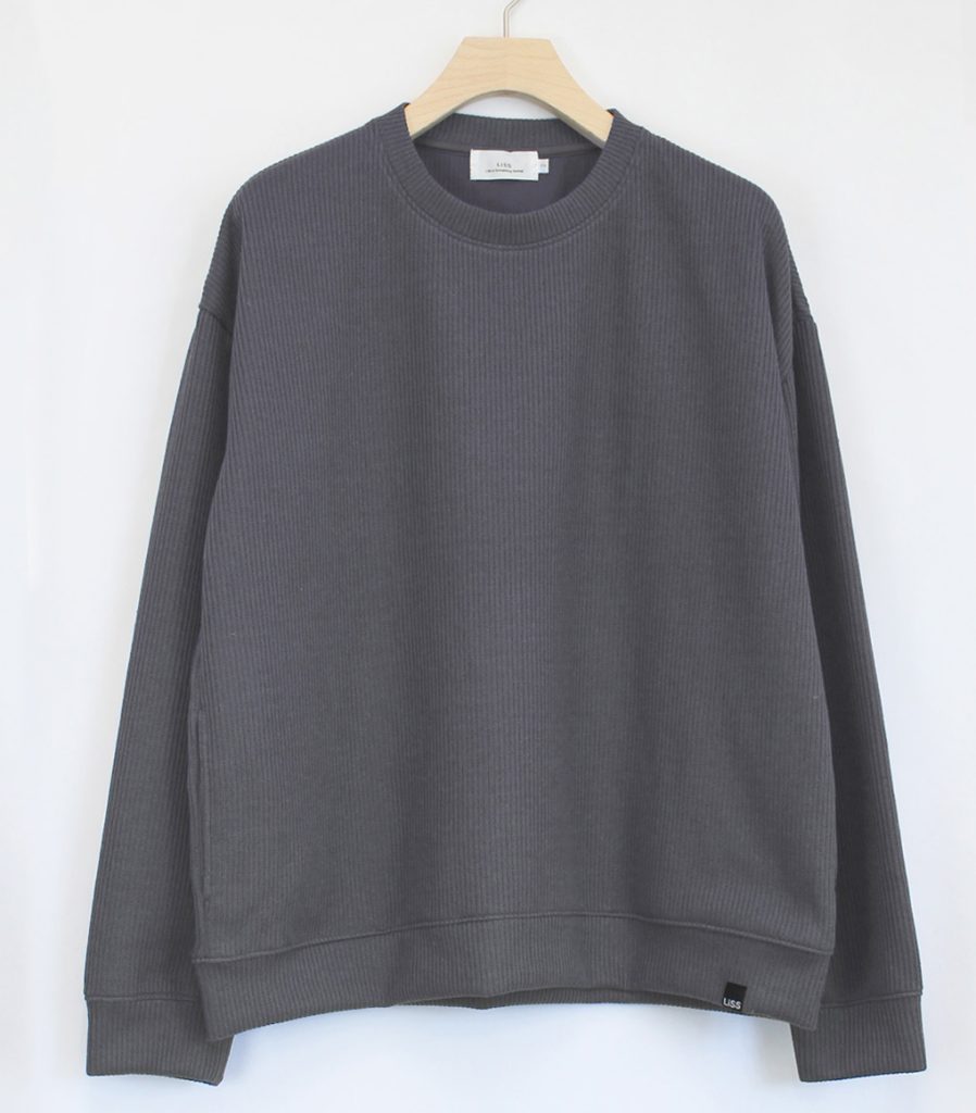 ドメスティックブランド【LiSS】では大人気素材のアイテム!ニット風に見えるカットソー素材を使ったカーディガンですが、同素材でクルーネックプルオーバーもあります!