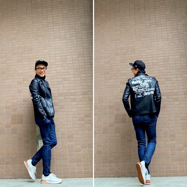 53歳になりました。最近、誕生日はこのレザーを着てるようにしてます。なんでか?っていうと、バックプリントのグラフィティーは上の方にこう書いてあります「もし今日が人生最後の日だとしたら、今やろうとしていることは本当に自分のやりたいことだろうか?」(スティーブ・ジョブズの名言の一つ)と、自分に言い聞かせてます。昔、オリジナルで作った細いデニムパンツも余裕で穿けます。