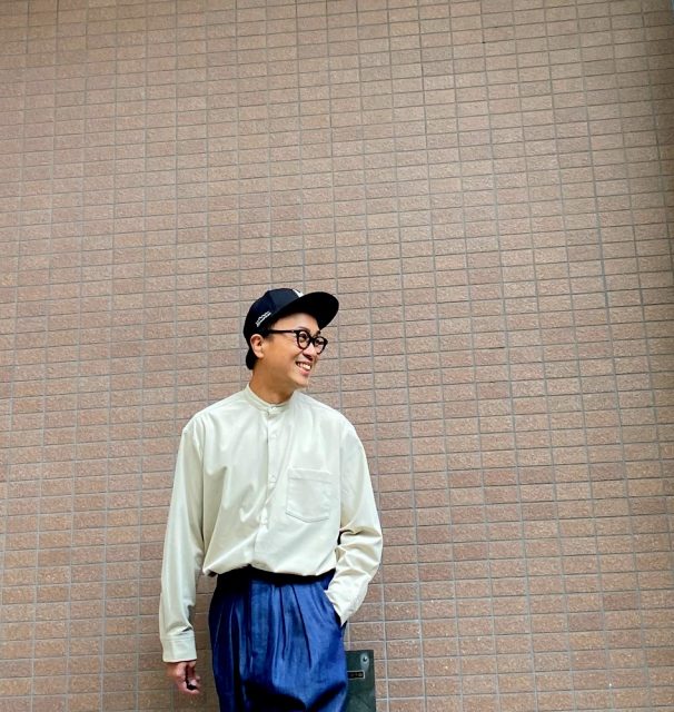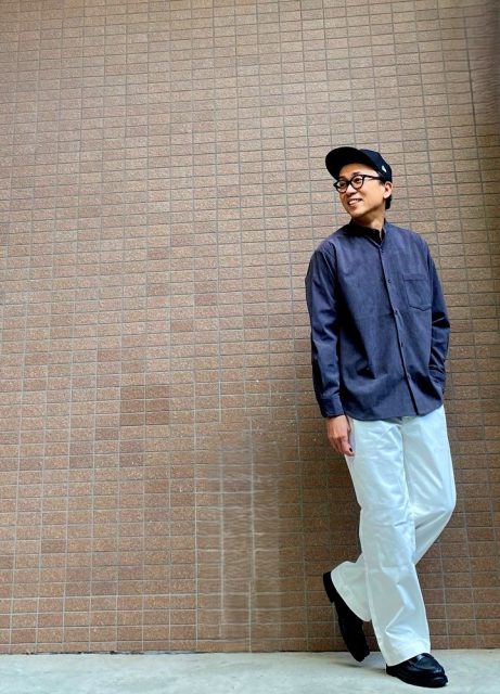 地が厚い素材を使ってのバンドカラーシャツはこれまであまりセレクトできていませんでした。