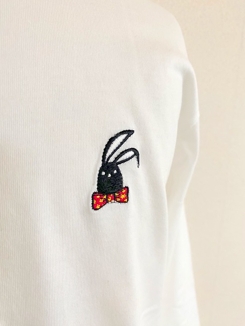 蝶ネクタイをしたシャビーが刺繍であしらわれたロングスリーブカットソーです。