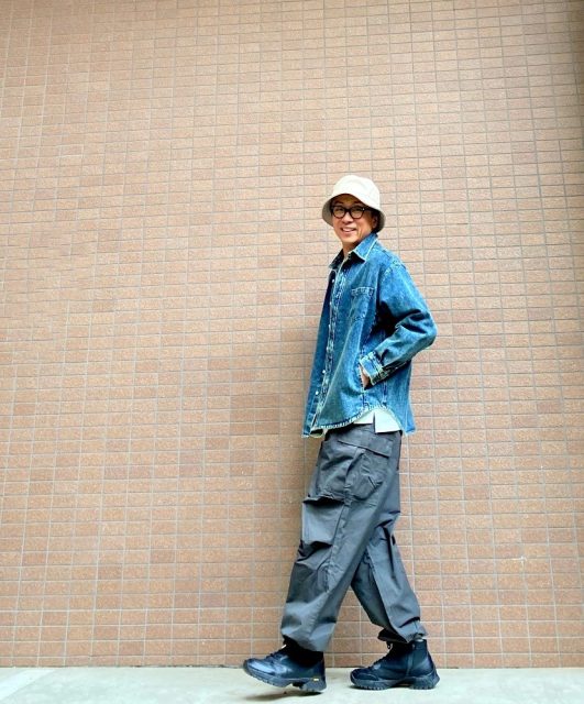 春先になるとミリタリーっぽいボトムスを穿きたくなってくると思います。トップスが軽くなってくるとカーゴパンツ系のコーディネートが簡単ですからね。