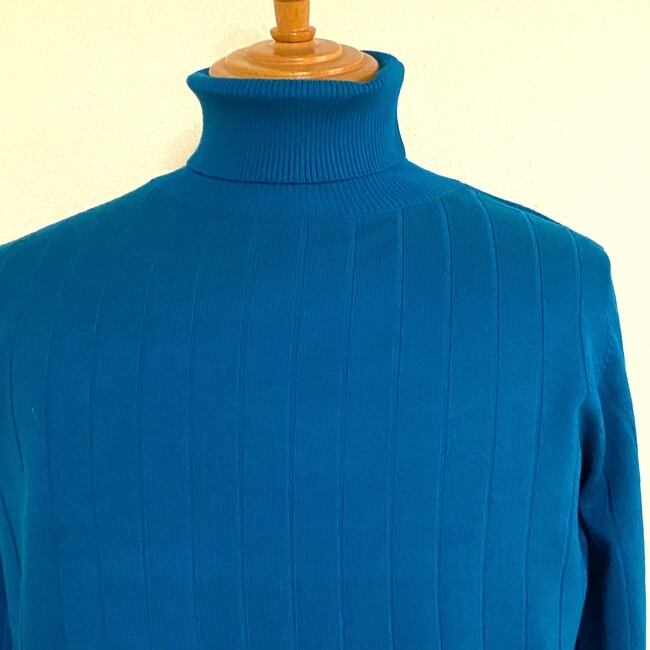 ・Wide Rib Turtle Neck Knit Blue 【Tete Homme】サイズはLのみ