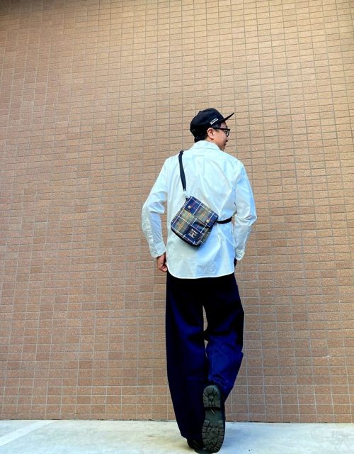 今日はバブアーの人気ミニバッグです!入荷していきなり売れたので、今日、19日まで在庫があるか?不安ですがブログ作っておきます!(すみません!完売です!コーデに使っているカーブシルエットデニムの着装感、タイプライター生地の白シャツをご覧ください)
