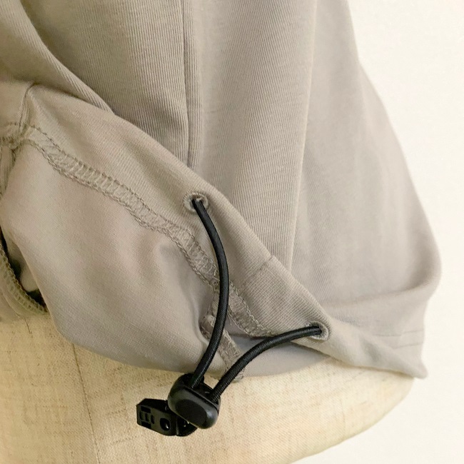 裾にはドローコードが入っているので、タックイン風の着こなしも楽しめるようになっています。
