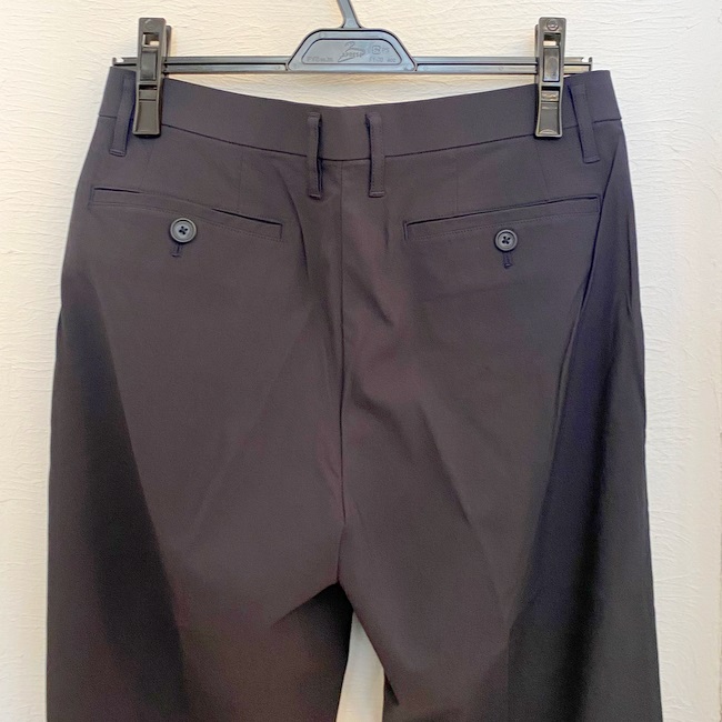 ツイル素材ならではの上品な光沢感と程よい厚みで、スリムシルエットを綺麗に保ってくれるスラックスパンツです。